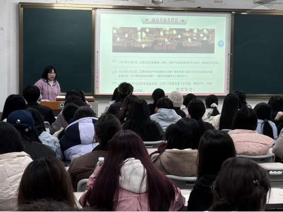 为深入学习和了解国家公祭日的历史背景与意义,增强青年学生的民族责任感和使命感,2024年12月26日晚,经济管理系青年先锋队在科教楼602开展以“国家公祭日”为主题的青年公开课。此次公开课由经济管理系学生第二党支部书记杨羊老师主讲,学生预备党员、入党积极分子积极参加。