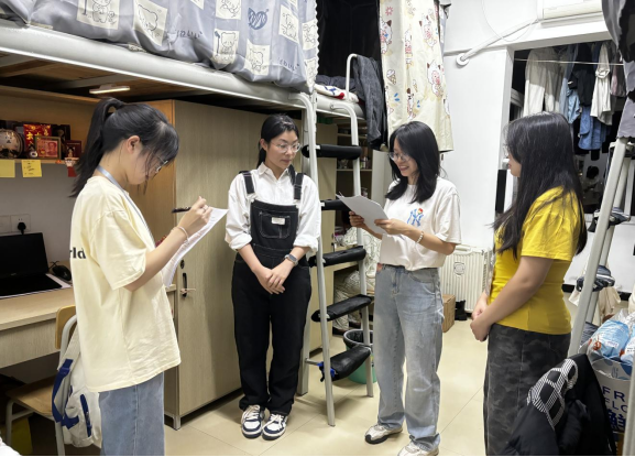 在本次检查中,学生第二党支部书记杨羊、黄玲老师以及青年先锋队的学生干部们秉持着公平公正公开的原则,对每一间学生党员宿舍进行了认真仔细的检查,检查内容包括宿舍整体卫生、学生党员个人卫生、宿舍文化、积极分子占比、舍员综合素质以及电器刀具等违禁品。总体来看,大多数学生党员宿舍都是整洁且规整的,符合宿舍管理要求,且能够发挥先锋模范作用,在生活上、学习上、思想上积极带动舍员。也有部分宿舍桌面摆放不整,地面脏乱,杂物随意摆放等,党支部书记和老师也提出整改建议,在评选的同时也亲切地关心大家的学习生活情况。
