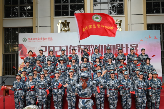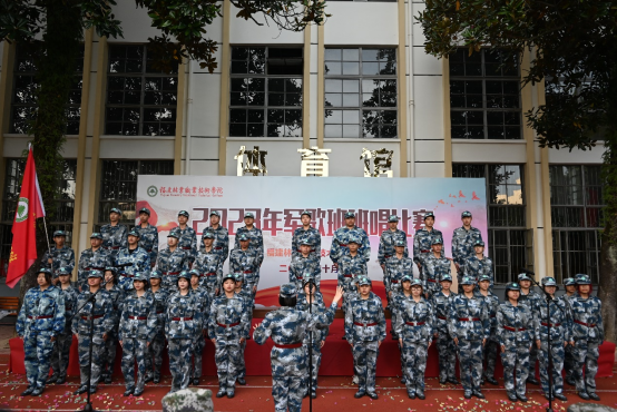 《强军战歌》、《团结就是力量》、《祖国不会忘记》等等一声声嘹亮的军歌震破秋日的云霄,响彻在天地之间。比赛中,同学们精神饱满,神情从容,以激昂的姿态演绎了一首首铿锵有力的经典军歌,向评委及观众展现了他们锐意进取的精神面貌,更展现了新时代青年勇担历史使命的决心。
