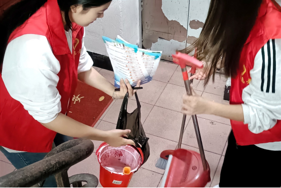 在经过党课学习后,为使青年们在实践中加深对理论知识的认知与理解,自觉践行社会责任,经济管理系的志愿者们进行了楼道卫生打扫,使居民们深刻感受到社区的关怀。接着志愿者们向社区居民询问相关意见,填写表格,使工作结果清晰简洁。