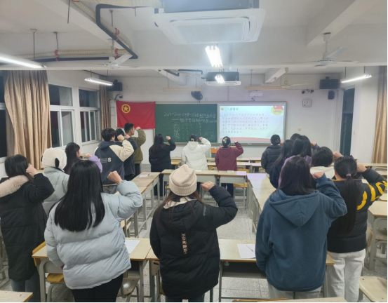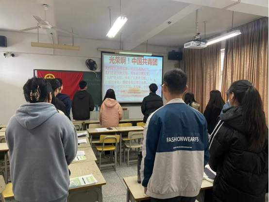 团支部成员在团支书的带领下,举起右拳,庄严宣誓,旨在唤起每一位青年团员的“团”意识,时刻牢记自己是一名共青团员,自觉加强组织性、纪律性,团结性,加深思想认识,从而进一步加强团支部的战斗力。坚定青年团员理想信念,增强团员的责任感、荣誉感、使命感,使广大团员青年不忘誓言,不辱使命,永葆先进。