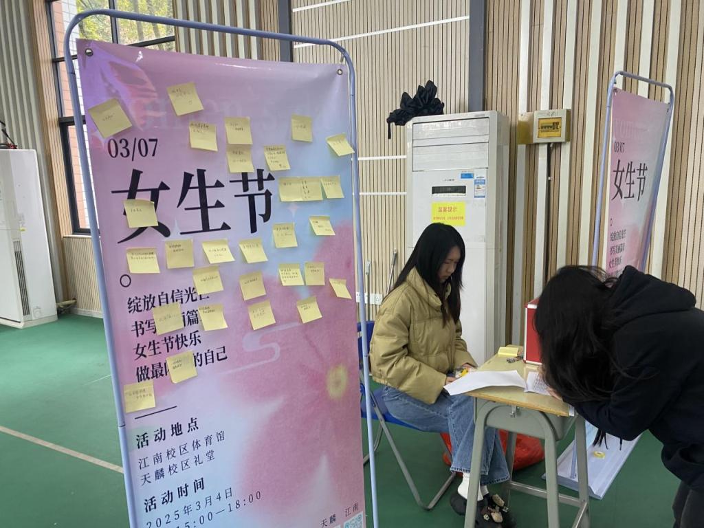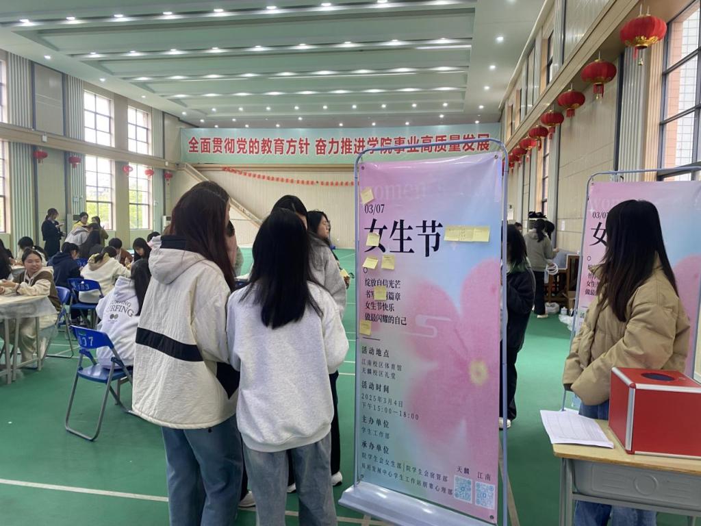 活动现场设置了心愿墙,同学们可以将自己的心愿和祝福写在便签纸上,贴在心愿墙上。一张张色彩斑斓的便签纸承载着同学们的梦想与期望,构成了一道独特的风景线。学校还为每一位参与活动的女生送上了一份精美的小礼品,表达了对她们的关爱和祝福。