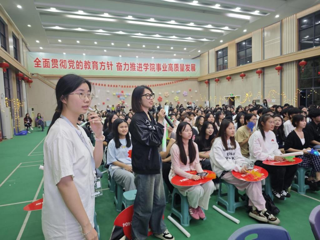 比赛中途,听伴奏猜歌名游戏将现场气氛推向高潮。当熟悉的旋律响起,台下的同学们瞬间沸腾,纷纷踊跃举手抢答。老师们也被这欢乐的氛围感染,参与其中,与学生们为游戏增添了不少温馨与欢乐,现场满是青春活力与欢声笑语。
