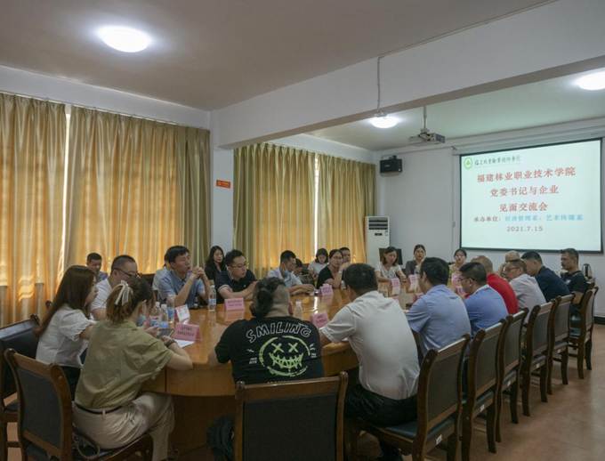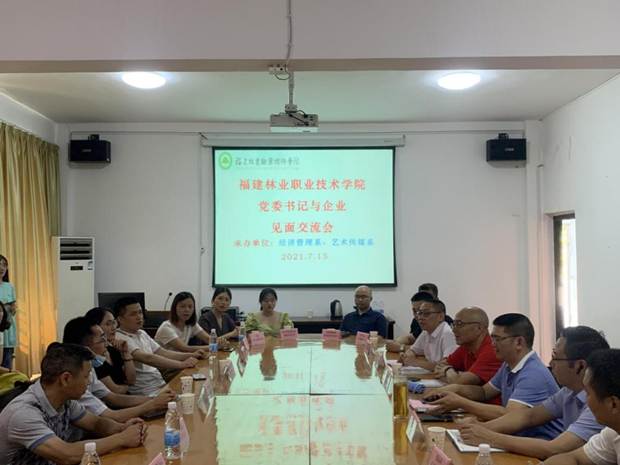 为了积极响应教育部关于“鼓励职业院校的书记、校长带头联系企业(含企业到校走访)”号召,了解企业对高素质技术技能人才的需求,助推校企深度合作,福建林业职业技术学院经济管理系、艺术传媒系于2021年7月15日召开学院党委书记与企业代表座谈会。院党委书记万泉、艺术系党总支书记陈政、经管系党总支书记谢福荣以及17家企业代表参加本次座谈会。