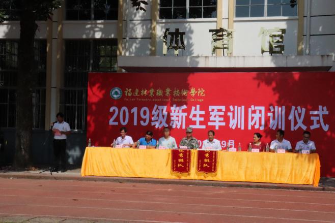 9月14日上午,天朗气清,惠风和畅。我系2019级学生军训汇报表演暨总结大会在学校田径场举行。学校领导刘文开、严绍裕、叶世森、黄云玲、陈友益、杨峰、蔡敏、谢福荣、曾秀云、成榕、天麟校区各系学生科长和新生辅导员,以及全体教官和所有2019届全体新生共同参加此次活动,此次结训典礼由副院长严绍裕主持。