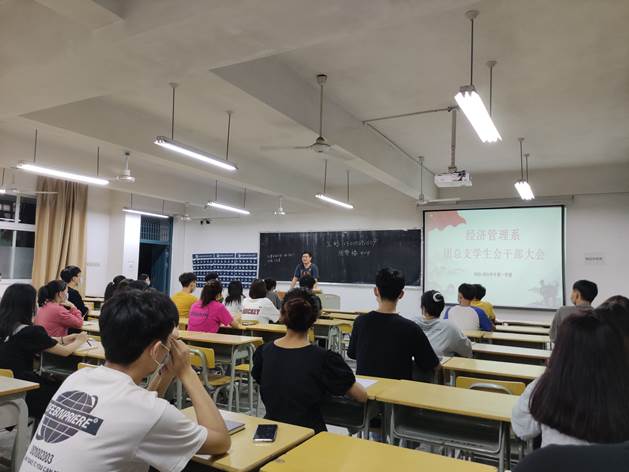 为了进一步加强经济管理系团总支学生会建设,充分发挥基层学生组织在学院各项工作中的积极作用。2020年9月7日19:00,经济管理系团总支学生会干部大会在科教楼202举行,学生科科长王昉老师出席并主持了本次大会,2020-2021学年经济管理系全体学生干部参会。