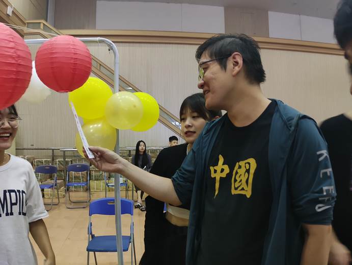 在活动现场,为了营造更浓厚的节日气氛,学习部组织了大量活动,最受欢迎的正是传统活动猜灯谜,无数红彤彤的小灯笼映入眼帘,每个灯笼下面都有一个谜语,让人忍不住要去猜看看。互动活动有你划我猜、踩气球、萝卜蹲等,活动采用积分制,一个积分可以兑换一次抽奖机会,活动参加越多抽奖次数就越多。