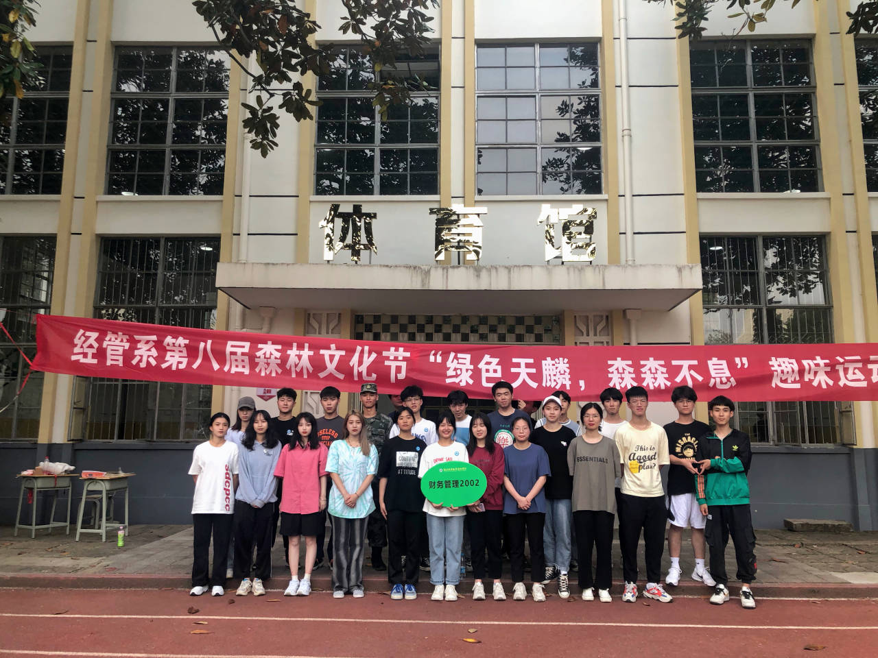为丰富同学们的课余生活,缓解学习带来的压力,2021年4月13日,经济管理系在天麟校区运动场举办了以 “绿色天麟,森森不息”为主题的趣味运动会。