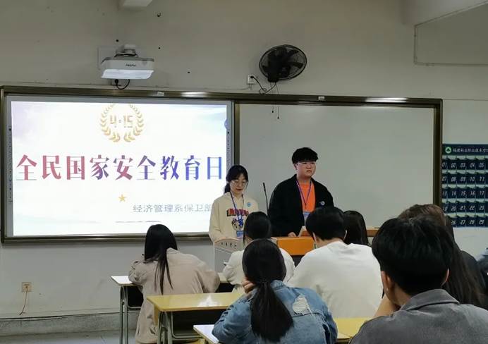 为进一步提高全民国家安全法治意识,营造维护国家安全的浓厚法治氛围,切实增强同学们防范和抵御安全风险能力;2021年4月14日晚七点,经管系保卫部组织国家安全教育会。在活动中,保卫部工作人员部秉承“国家安全,人人有责”的精神为同学们普及讲解国家安全教育日相关内容;耐心解答同学们对国家安全教育的疑惑;组织同学们学习观看了全民国家安全教育视频,引导同学们树立安全防范意识,增强自我保护能力,充分掌握应对危害国家安全行为的方法。