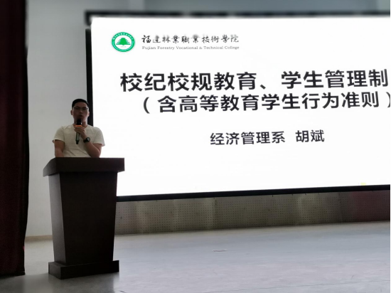 为引导学生自觉遵规守纪,养成良好的思想品德和行为规范,增强学生的纪律意识和自律意识,胡斌老师和林淋老师在10月17日为我系新生开展校规校纪专题教育讲座。