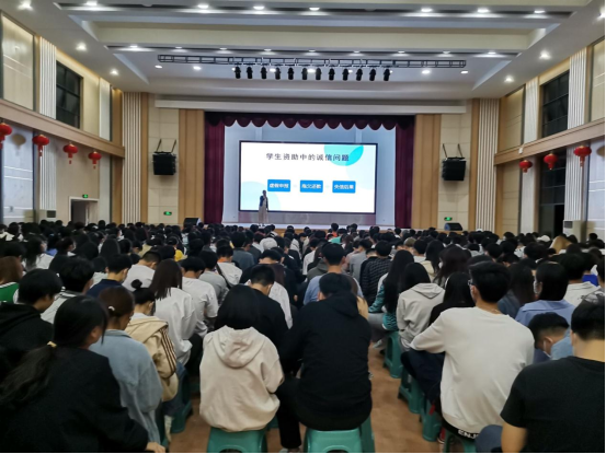 不让任何一个学生因为家庭经济困难而失学。林淋老师向同学们详细解读了学校的相关资助政策,介绍了不同类型奖学金的申请方式和条件,一一解开了同学们对资助政策的疑惑之处。向同学们介绍了各奖项的种类,奖励金额及评优条件。林淋老师激励大家继续保持昂扬斗志,向着未来砥砺前行。之后胡斌老师对学籍管理、考试管理、学位管理和违纪处分及学生日常管理的相关制度进行介绍,强调了旷课、考试违纪等行为导致的严重后果,要求同学们在今后的学习和生活中,严格遵守国家法律法规和学校规章制度。