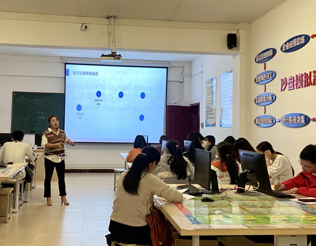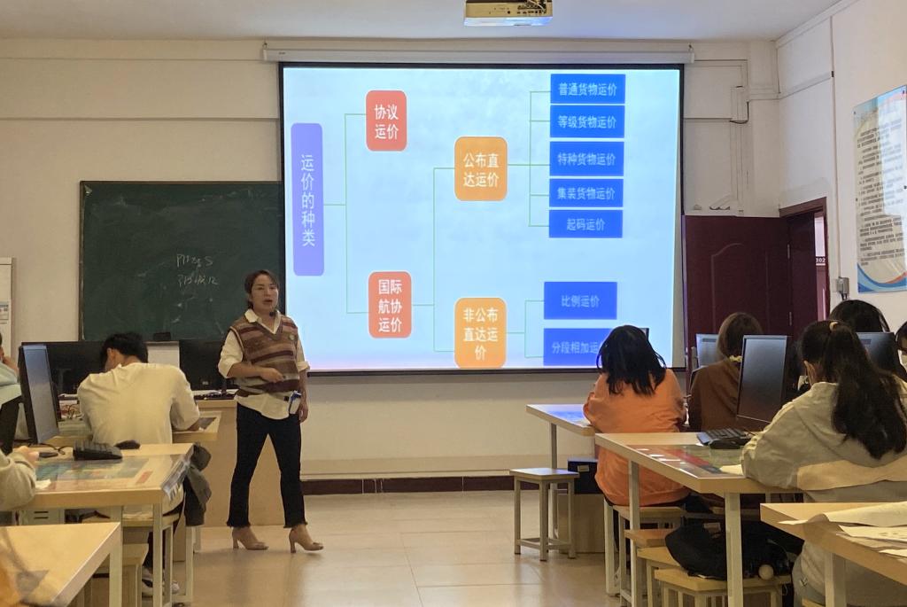 宋李玉副教授在课堂中展示了沉稳冷静、亲切生动的教学风采。从“中国速度”导入新课,采用任务驱动、案例式教学等方法,使学生们掌握了航空货物运费的构成、运价种类及航空运单运费的计算。同时,利用“职教云”平台,构建线上线下混合式教学模式,讲练结合,有效形成教学闭环。