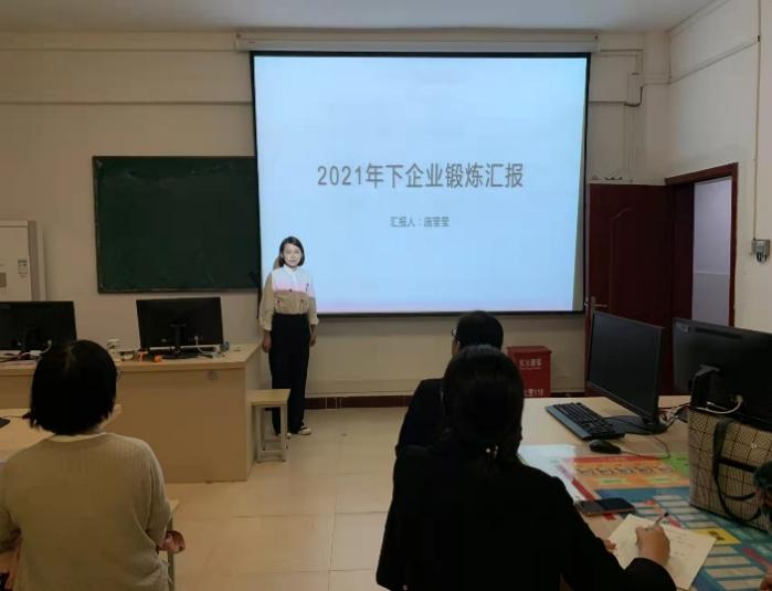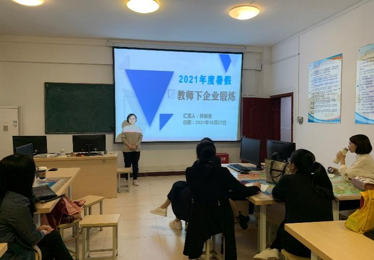 利用暑期时间,经管教研室分别派施莹莹、林丽金老师等14位教师参加下企业实践。返校后分别做汇报,分享自己的所学所感。会上施莹莹、林丽金两位老师精心准备,从企业文化、实践锻炼过程、收获体会、工作建议等方面依次作了暑期实践锻炼成果汇报,与会教师认真聆听了汇报并进行了现场交流。
