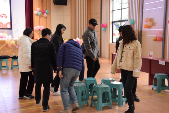 本次游园活动设置了多个精彩小游戏,有益智类的、技巧类的和体能类的,十分具有趣味性,活动中间还穿插有抽奖环节,让整个活动惊喜不断。 “定时炸弹”,第一个预热游戏,通过限时提问回答,增进了教师、警官和学生间的互相了解,打破了大家的陌生感和拘束感,为下一环节的游戏做好铺垫。 “水果蹲”游戏,大家难掩紧张情绪,考验着在场人员的记忆力与反应力,稍有走神,则面临着被淘汰。“抢凳子”游戏,师生们互不相让,各出奇招,有的人盯着对方的手,生怕音乐停了自己还不知道,有的人盯着椅子,仿佛它会从自己的视线中逃脱一般,有的人则突然来个假动作,借以迷惑对手,整个活动现场的气氛开始高涨。接下来,心有灵犀、背对背夹气球、数青蛙、杯子接乒乓球、疯狂抽黑背、谁是卧底、击鼓传花、杯子吹乒乓球、气球吹杯子等游戏更是让当天的游园会趣味横生、笑声不断。游园会活动从下午3点开始至17点30分结束,整整两个半小时,游园现场热闹非凡,气氛热烈。