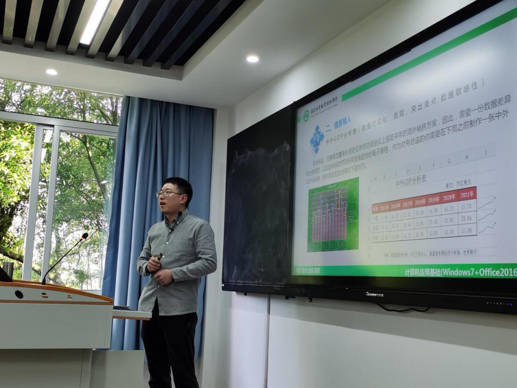 杨帆老师在讲授《计算机基础与操作》的计算和分析Excel数据课程时,将思政元素融入其中,充分发挥以文化人、以文育人的思想政治教育功能。一是通过在互联网搜索实时的会计岗位的任职资格,让学生认识到自己未来从事的岗位应该具备什么技能,激发学生的学习兴趣培养学生从更高层次看问题的能力,增强学生的大局观,以此引导学生在岗位上应该遵守职业道德规范,法律法规的职业素养;二是通过课堂教学操作向学生展示历年中国、美国、欧盟三个国家的GDP数据,用真实的数据有力证明了祖国近年来的跨越式发展,展现了国泰民安、欣欣向荣的一派景象,进一步厚植学生的爱国主义情怀,让学生努力学习,为中华民族的伟大复兴而不断奋斗。