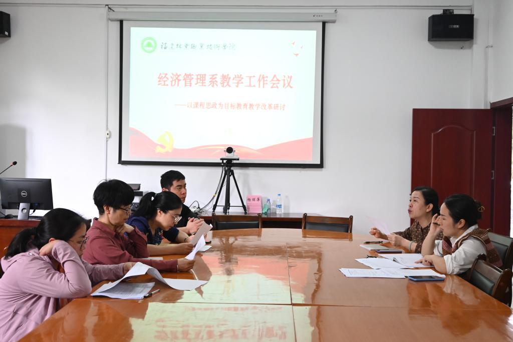 为推动新时期各项教学工作有序开展,2022年5月25日,经济管理系召开教学工作会议,对扎实做好常态化疫情防控背景下的教育教学工作进行安排部署,并就如何进一步深化“课程思政”进行专题研讨。经济管理系教学工作委员会全体成员参加了会议。会议由经济管理系主任林文胜主持。