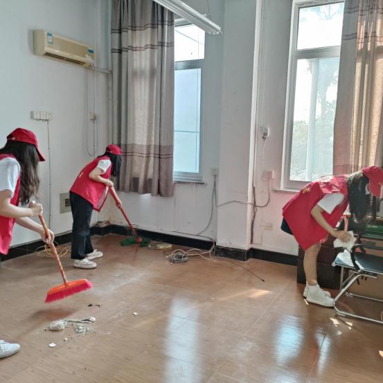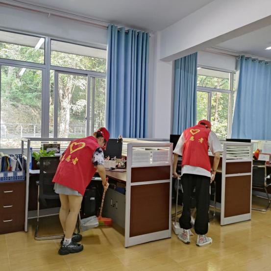 青年志愿者们各司其职,有序地开展清扫工作,通过擦门窗、扫地、拖地、搬桌凳、拜访办公用品等实际行动,对教师办公室的卫生进行全面清理,为老师营造一个良好的办公环境。志愿者们齐心协力、配合默契,既用实际行动展现了对教师的感恩之情,同时也收获劳动的成就感和满足感。