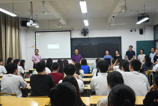 本网讯9月13日晚上,随着新生入学报到工作的结束,2022级新生们翻开了大学新篇章,为进一步做好学生思想工作,福建林业职业技术学院院长刘文开、经济管理系党总支书记谢福荣、经济管理系主任林文胜老师、经济管理系党总支副书记王昉老师、经济管理系学生科科长兼团总支书记温全军老师、经济管理系专职组织员张翼翔老师纷纷走进班会现场与新生一起共话未来,给班学生上了大学的“第一堂课”。