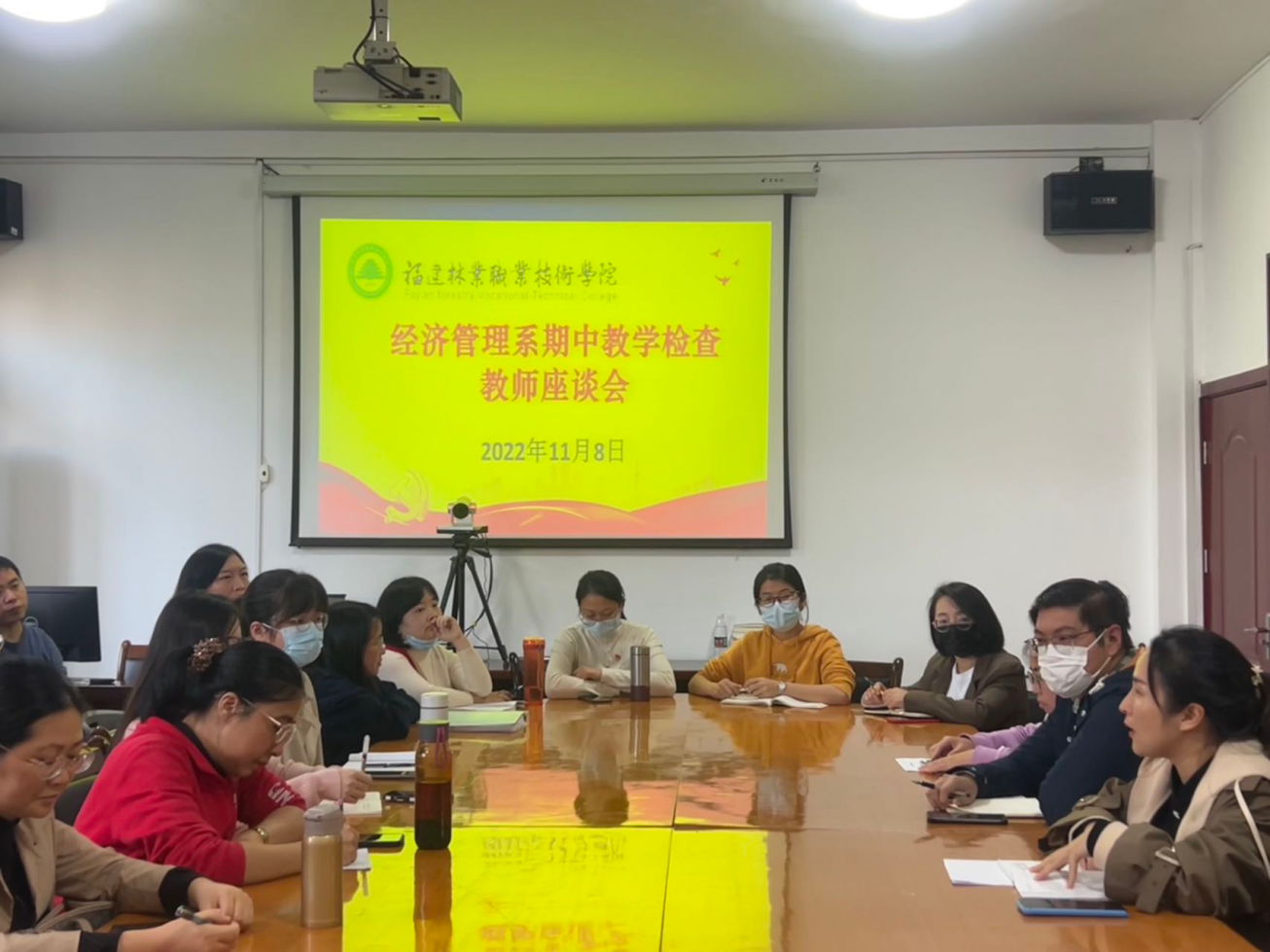 为及时了解2022—2023学年第一学期教师教育教学情况及学生日常学习表现情况,11月8日下午,经济管理系于经管楼408系会议室召开期中教学检查教师座谈会,会议由经济管理系副主任宋李玉老师主持,经济管理系全体教师参加了会议。