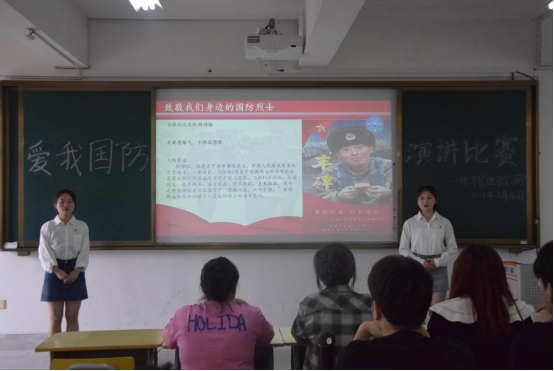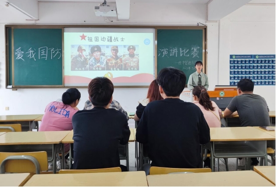 为激发大学生关心国防、热爱国防、建设国防、保卫国防的热情,增强大学生家国情怀、强国强军的责任担当,弘扬英雄先进事迹,进一步传承红色基因,发扬时代精神,5月16日下午,经济管理系在科教楼402组织开展爱我国防主题演讲比赛的复赛。此次演讲比赛,由经济管理系学生科长兼团总支书记温全军以及辅导员张中军、罗颖、彭素芸、吴静等老师担任评委。