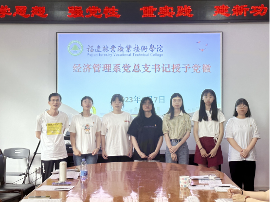 接着,由经济管理系党总支陈友益书记授予正式党员党徽。