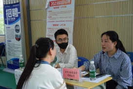 在招聘会现场面试环节,各位毕业生积极和招聘人员交流,并积极地去了解相关岗位、工作内容、薪资、企业的发展前景,招聘人员详细解答各类专业问题,同学们利用自身所学的专业知识,以自信昂扬的面貌向企业递上自己精心制作的简历。双方都自觉遵守你选、我选,赢在双选的招聘规则。