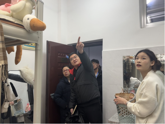 走访过程中,林文胜主任、王昉副书记等一行与同学们亲切交谈,倾听同学们的心声和诉求,及时了解学生的思想动态,学习情况和新学期的规划展望,希望同学们快速调整状态,适应开学节奏,将主要时间和精力投入到新学期的学习工作上来。与此同时,还仔细检查了宿舍的设施装置、卫生内务、墙面装饰等情况,仔细排查了寝室安全隐患,对防疫安全、用电安全、防火防盗防诈骗等安全内容进行了再强调再教育。