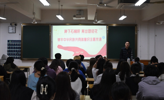 进一步深植“福籽同心爱中华”理念,铸牢中华民族共同体意识,凝聚民族团结的校园力量,2024年3月28日,经济管理系在科教楼302组织开展“种下石榴籽育出团结花——铸牢中华民族共同体意识”主题党课暨2024年度第一期青年公开课。本次主题党课经济管理系党总支副书记(主持工作)王昉主讲,少数民族学生代表、55期、56期入党积极分子参加
