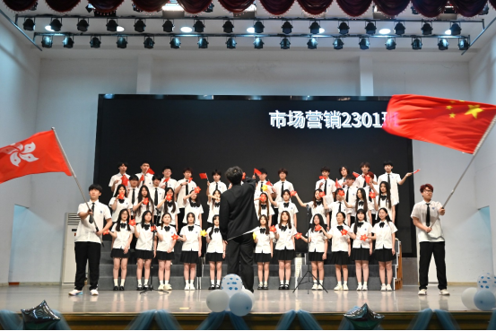 随着主持人激情昂扬的开场,比赛正式拉开序幕。比赛过程中,同学们的歌声整齐嘹亮,精神昂扬饱满,为校园生活注入了勃勃生机,传达了真挚的爱国情怀。参赛班级均统一着装亮相,淋漓尽致地展现了自身的独特魅力。他们以激昂慷慨的旋律点燃了现场气氛,充分展现了青春的活力与激情,以铿锵之力歌唱祖国,歌颂伟大的中国共产党。
