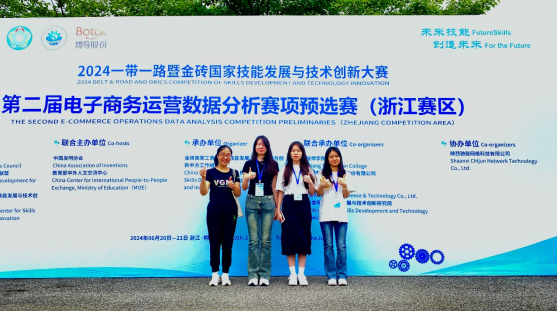 在2024年6月20日-6月21日在浙江嘉兴桐乡技师学院举办的2024金砖国家技能发展与技术创新大赛第二届电子商务运营数据分析竞赛(浙江赛区)中,我系学子李敏(会信2203班)、蒋庆玲(会信2203班)、邓仪婧(会信2203班)在吴淑秋老师的指导下,经过激烈角逐,凭借扎实的专业知识和出色的分析能力,荣获了三等奖的佳绩,另外一队李守保(市销2202)、乐文杰(电商2201)、蓝荣鹏(电商2201班)获得优秀奖,指导老师为吴可佳、张婕老师