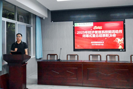 为深入贯彻落实国家职业教育方针,弘扬工匠精神,培养德技并修的高素质技术技能人才,经济管理系开展了2025年“技能活动月”系列比赛。活动旨在引导更多学生积极参与课外技能训练,夯实技能基础,提升专业素养,锻造工匠精神。经过一个月的热血竞技,“技能活动月”闭幕式暨总结表彰大会于6月23日晚在经管楼311隆重举行。经济管理系党总支书记陈剑勇、经济管理系教学科科长陈雨泓、学生科兼团总支负责人胡斌、赛项指导老师代表以及学生代表齐聚一堂,共同见证这一荣耀时刻。