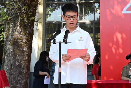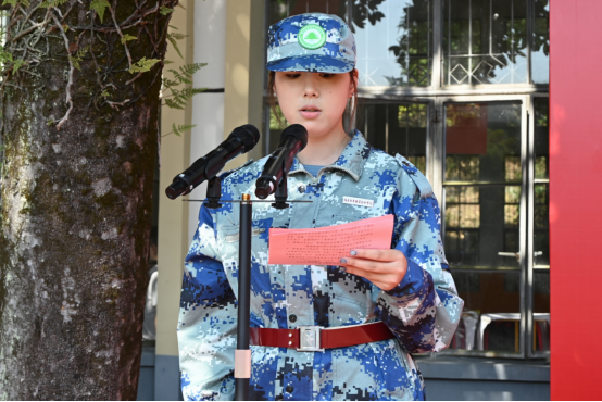 新生代表会计信息管理2501班陈锨漫同学,她代表全体新生庄严承诺,将以最饱满的热情、最昂扬的斗志投入军训,服从命令、刻苦训练,以实际行动展现2025级新生的青春风采。