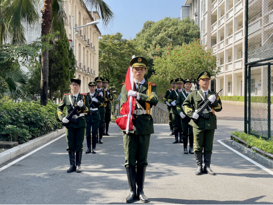 学院党委书记陈建辉为天麟校区军训营授旗,经济管理系党总支书记陈剑勇上前接旗,鲜红的营旗迎风展开,象征着为期16天的军训征程正式开启,也凝聚着学院对新生锤炼意志、磨砺品格的殷切期望。