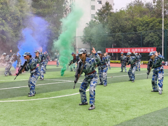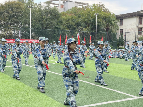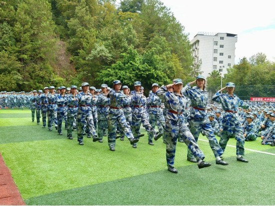 闭训式伊始,军训成果汇报震撼开场。分列式方阵踏着整齐的正步走过主席台,脚步声铿锵如鼓,军容严整、目光坚定,将青春的朝气与纪律的严谨展现得淋漓尽致。