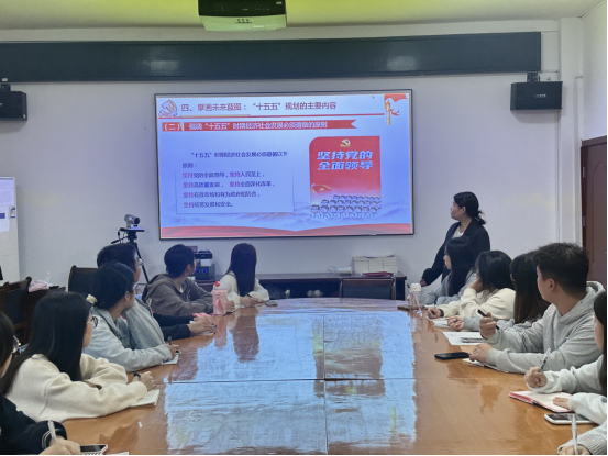 为深入学习贯彻党的二十届四中全会精神,引导支部党员深刻把握“十五五”规划的战略内涵,增强青年党员的使命担当。11月11日下午,经济管理系学生第一党支部在经管楼408开展“深学细悟党的二十届四中全会精神,勇担‘十五五’现代化新使命”专题党课。本次党课由支部书记卢彦铭老师主持,支部全体教师党员、预备党员及入党积极分子参加。