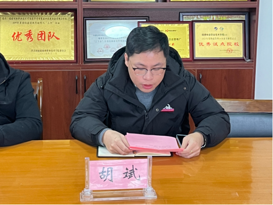 会上,组织部(统战部)副部长赵诗羽宣读了学院干部任职文件,宣布任命胡斌同志为经济管理系党总支专职组织员。