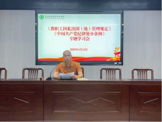 为进一步规范教职工因私出国(境)管理工作,强化纪律意识和规矩意识,4月14日下午,经济管理系在经管楼311会议室集中学习《福建林业职业技术学院教职工因私出国(境)管理规定》(闽林院党〔2024〕68号),并结合新修订的《中国共产党纪律处分条例》中关于因私出国(境)相关条款开展深入学习研讨,本次学习会由经济管理系党总支书记陈剑勇主持,全体教职工参加。