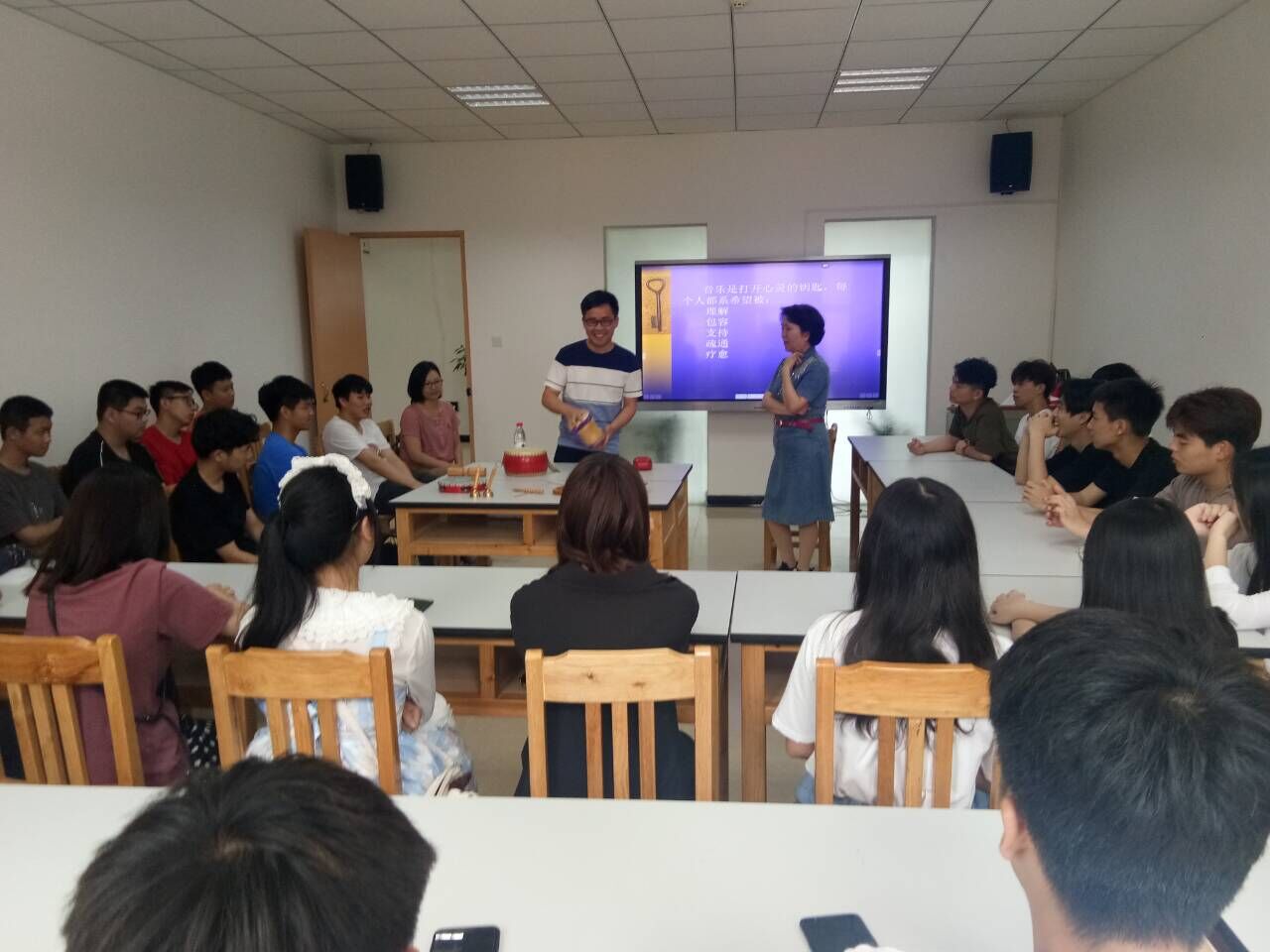 5月16日下午14:00,我系特邀闽江学院心理咨询中心主任吴于蓝老师,为我系三十余名学生开展“音乐与心理”的团体训练,同时莅临本次活动的嘉宾有我院心理咨询中心主任陈红英老师。