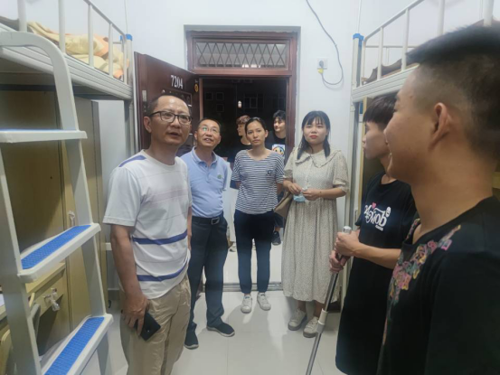 为了解我系2018级五年专新生和2020级老生返校情况,在疫情防控常态化下检查学生宿舍卫生和其他情况,9月4日晚,我系党总支书记李肇锋、主任孙华带领学工组辅导员及新生助导一同前往新生宿舍看望新生。