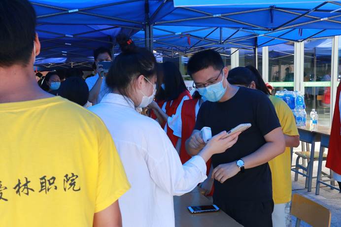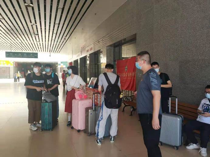 在高铁延平站福建林业职业技术学院接待点,我系党员教师认真接待到站的新生同学,查看到站同学的健康码并测量体温,帮助他们搬运行李,引导他们到达我院校车接送的上车地点。