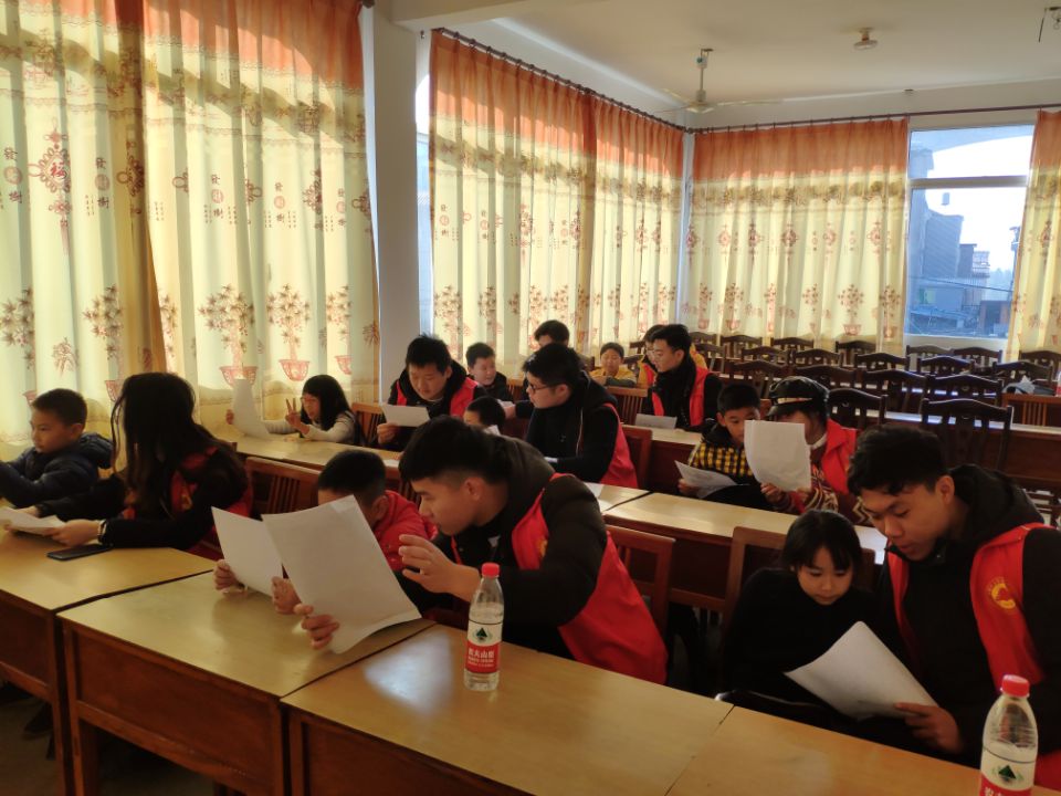 小学生的寒假生活即将开始,而每位小朋友在完成寒假作业之时都会存在或多或少的问题,所以志愿支教的第一项任务就是对小学生在完成寒假作业时遇到的问题进行统一解答,每个志愿者负责一位小朋友。随后志愿者们对小朋友们上一学期的学习内容进行复习总结,帮助他们梳理所学知识,对个别还不熟悉的汉字重新教他们发音,并从偏旁部首等构成帮他们熟悉汉字;最后志愿者和小朋友们分享了自己的学习经验,鼓励他们要热爱学习,在好好学习的基础上建设美丽国家。