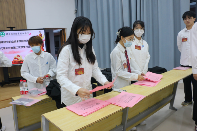 议程四是投票选举共青团交通工程系第一届总支部委员会委员(从系团总支代表中产生,不超过本系团代会代表1/3,差额20%以上,兼顾女代表、少数民族代表比例)。各位代表按照流程进行了选举投票。