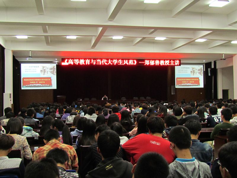 为了让2014级新生更好、更快的适应大学教育,2014年11月23日星期日晚,交通工程系邀请了学院院长郑郁善教授、博士生导师,开展了题为《高等教育与当代大学生风范》的讲座。交通工程系全体教师和500多名学生倾听了本次讲座。