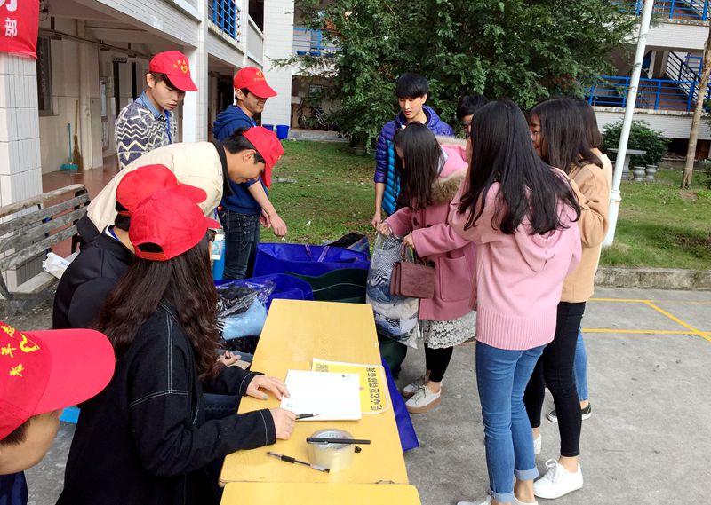 此次活动得到广大同学们的积极响应,活动现场不断有同学前来询问爱心募捐事宜,报名加入此次公益活动。活动伊始,就有同学提着大袋小袋的爱心物质前来捐赠。捐赠的爱心物品种类繁多,衣物、电器、书籍、以及各式各样的生活用品。捐赠的衣物、书籍等物资我们将通过官方渠道快递送达贫困地区。收集到的废纸壳等废品将会变卖成资金,同样捐给贫困地区。
