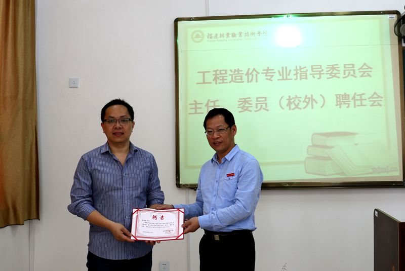 为深化教学改革,扎实做好专业建设,实现专业与行业、企业的对接。2015年5月9日上午,交通工程系在实训一号楼会议室召开了工程造价专业专业指导委员会主任和委员(校外)的聘任会。本次聘任的专业指导委员会主任(校外)为福建省造价总站的教授级高工高雄映同志,聘任的委员(校外)为南平市造价协会的高级工程师黄敬民同志。本次聘任目的是我系工程造价专业的专业建设能在两位行业专家的指导下,在专业调研、人才培养方案修订、课程体系建设、师资队伍培养等方面全面与行业企业接轨。