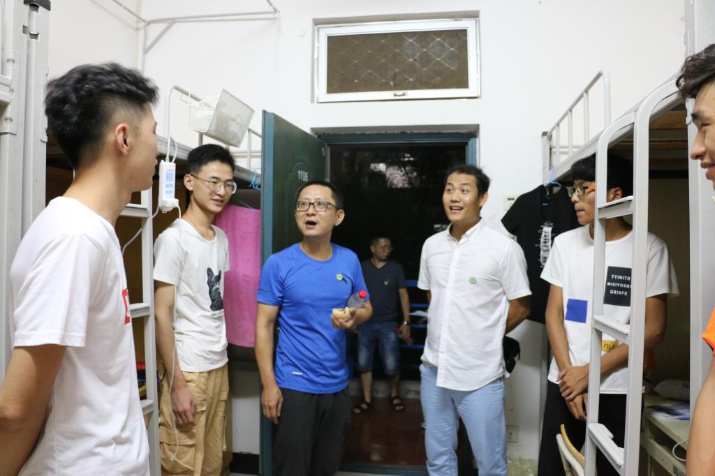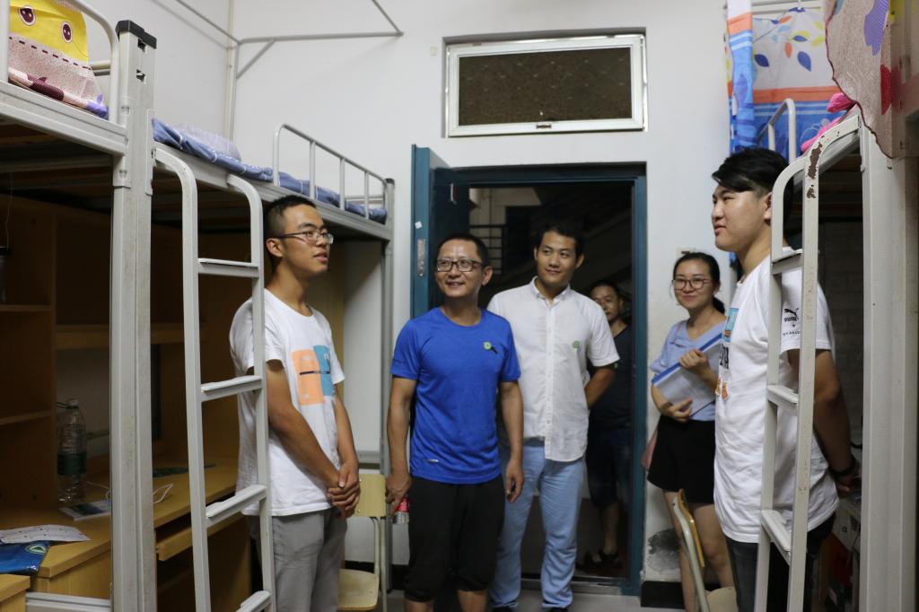 2018年9月6日晚上8点半,为了让新生能更快适应新环境,了解新生的情况和需求、帮助新生尽快适应大学生活,我院陈副书记,交通工程系孙华主任,学生科长杨峰等几位老师走访新生宿舍。