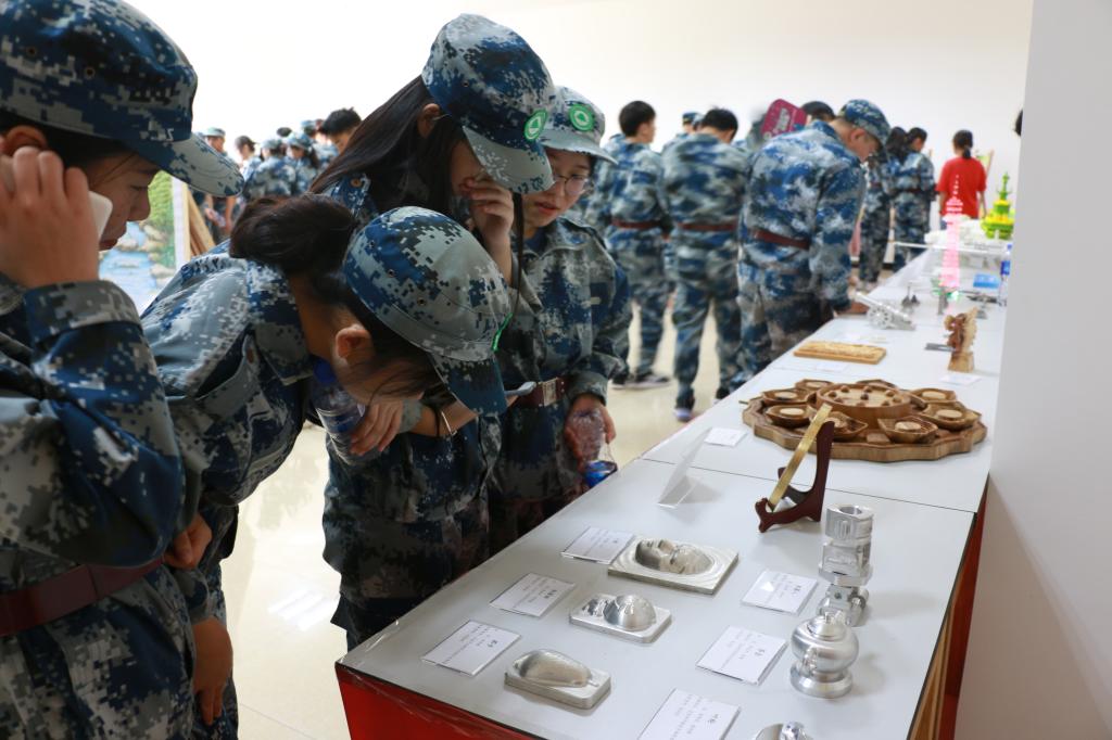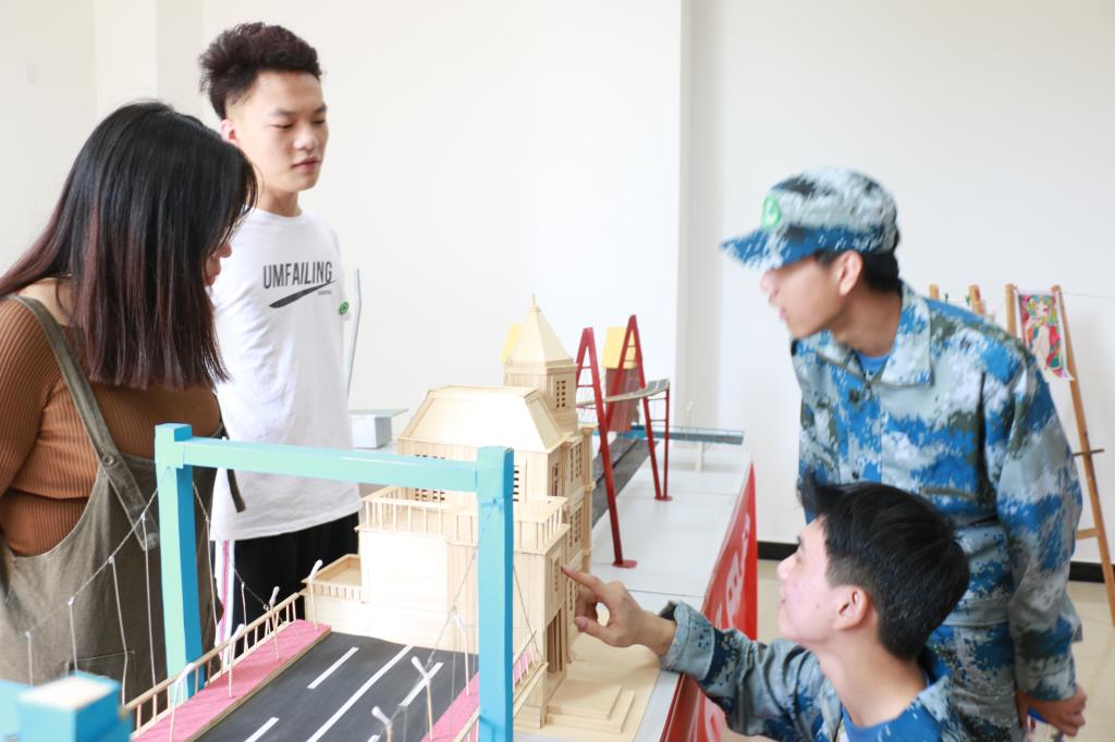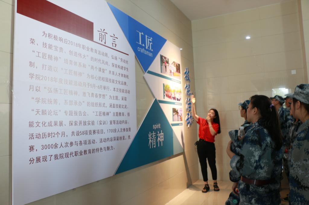 开始志愿者带领同学们进入技能大赛作品展览馆,先给大家介绍了工匠精神和我校天麟精神,之后带领同学们参观技能大赛作品。