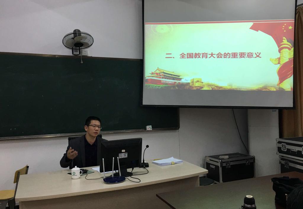 为贯彻全国教育大会精神,深入学习新时代下职业教育工作面临的新形势新任务,学习习近平总书记对当前和今后一个时期教育改革发展作出的战略部署,为新时代教育事业勾画出的蓝图并指明了方向。11月13日下午2:30我院党委委员叶世森副院长在实训一708为交通系全体教师开设了“学习贯彻全国教育大会精神”的党课。