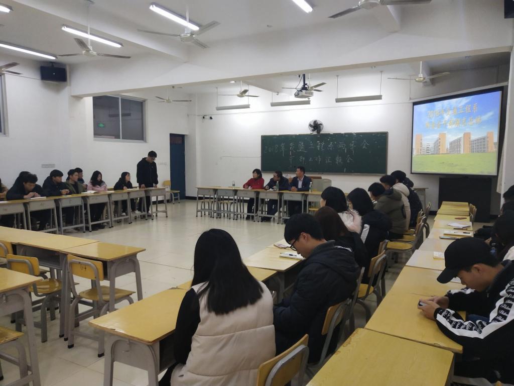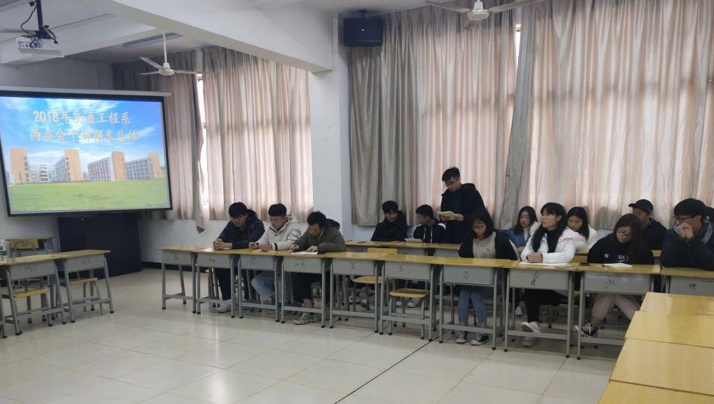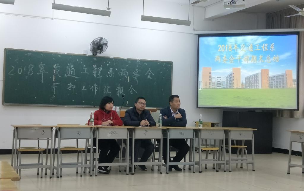 2019年1月4日下午14:40在实训四410,交通工程系召开两委会干部期末总结大会,由各部门负责人汇报本学期工作情况,存在问题,对下学期工作进行规划。此次会议由陈静老师主持,徐洪老师和杨峰老师参加了会议。