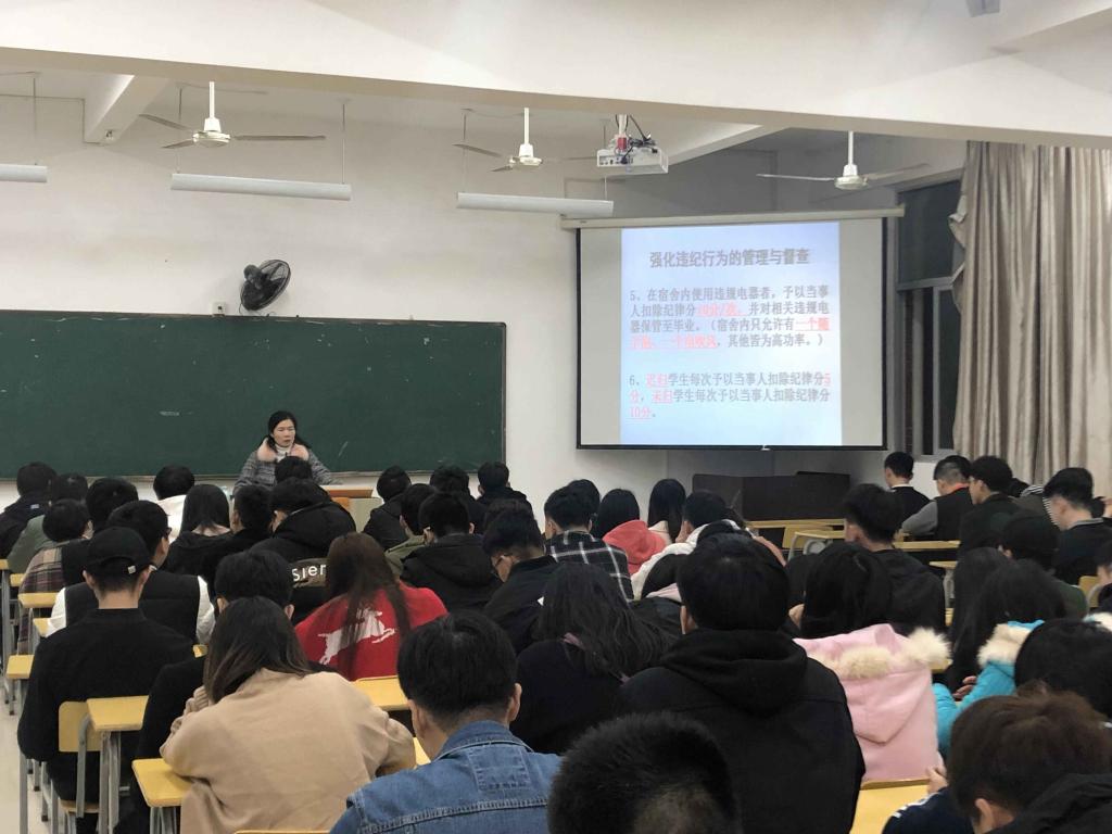 为落实《福建林业职业技术学院学生工作委员会关于进一步加强学生宿舍管理的意见》,加强我院宿舍管理,规范学生行为习惯养成,强化学生整洁自律的生活意识,营造安全文明的学习和生活环境,我系各班级于1月10日开展关于“加强宿舍管理”的主题班会。会议由各位辅导员主持,旨在将宿舍规定清楚、准确的传达到学生的脑海里,提高宿舍安全,美化宿舍环境。具体措施有以下五点: